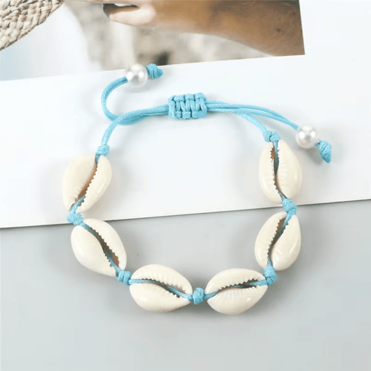 Bracelet Cheville Coquillage Cordon Azur