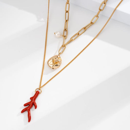 Collier Coquillage Corail